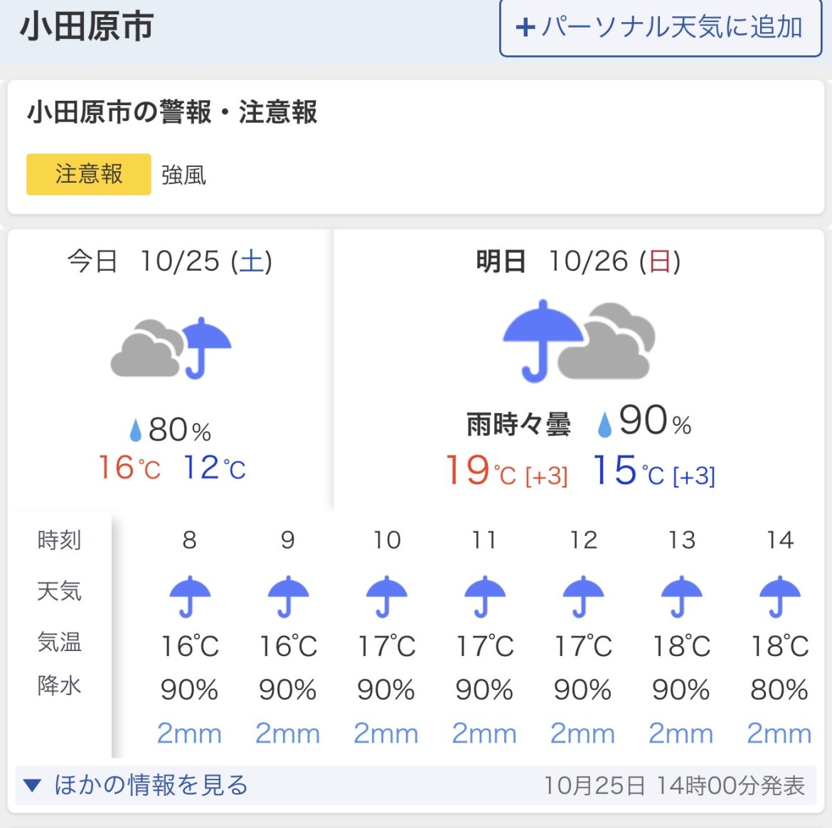 明日の小田原市の天気