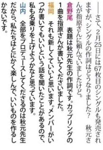 秋元「まずはカップリングから。よければ表題曲もありうる」