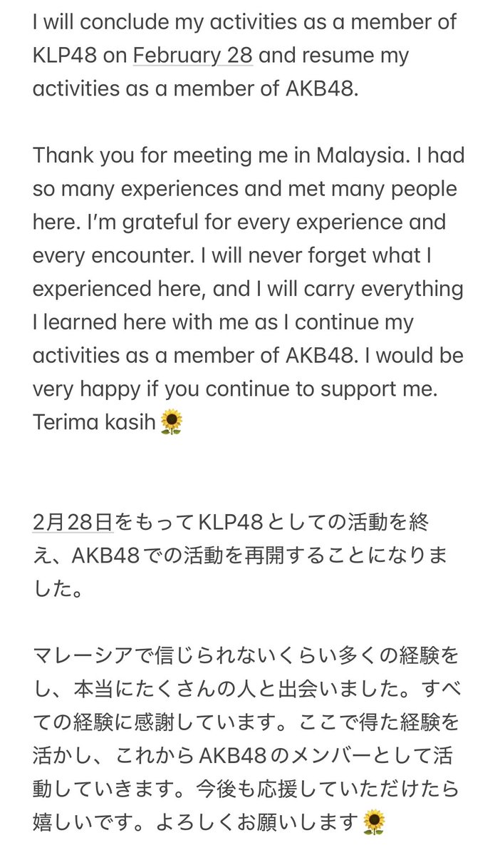 この度、2月28日をもってKLP48の活動終了します 💐