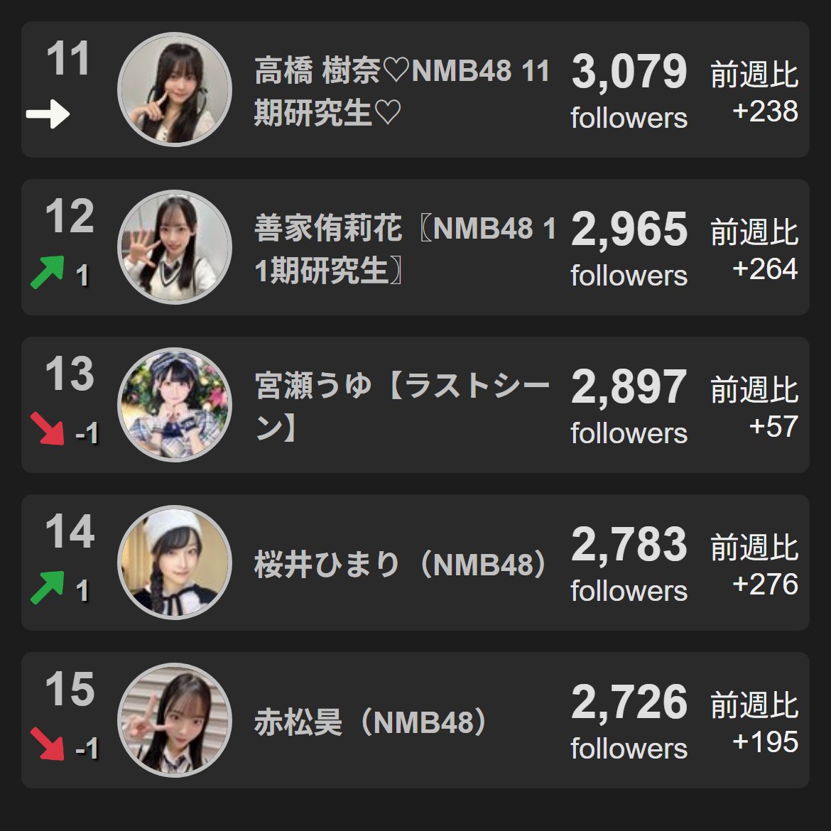 アイドルXフォロワー数ランキング