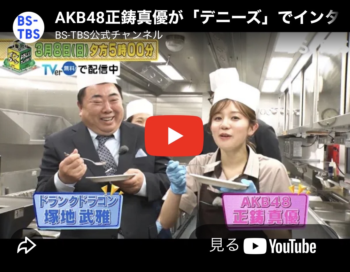 AKB48正鋳真優が「デニーズ」でインターン!オムライス作りやPR動画作成に挑戦!「御社でインターンよろしいでしょうか?」3/8(日)夕方5時