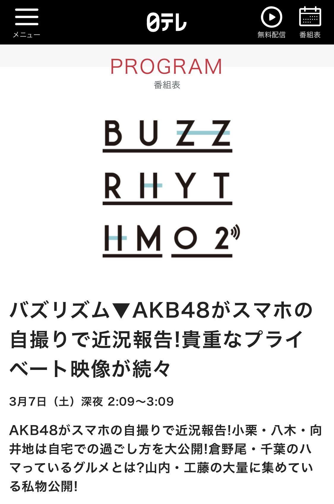 【3/6(金) 今夜 26:09~】 AKB48 日テレ「バズリズム02」出演・新曲『名残り桜』 & 桜メドレー披露 スタジオトークもあり