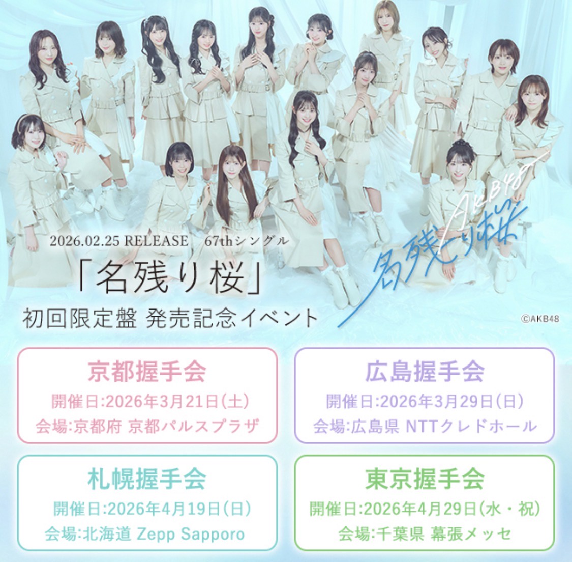 2月25日(水)発売AKB48 67thシングル『名残り桜』初回限定盤に封入されてる