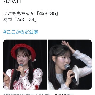 AKB48 【大悲報】八木愛月さん&伊藤百花さん、九九が出来ない… 1: 名無しさん 2025/09/09(火) 18:12:24.89 VIPQ2_EXTDAT: none:none:1000:512:donguri=0/4: EXT was configured 2025.09.10 AKB48SNS