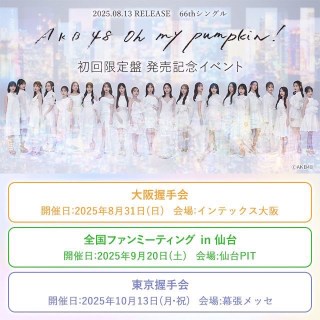 AKB48 【朗報】 10/13(祝・月) AKB48 東京握手会で67thシングルの選抜発表がされる模様!! 1: 名無しさん 2025/09/07(日) 20:30:55.09 今日でパンプキンの個別握手会 全日程 終了!! VIPQ2_EXTDAT: none:none:1000:512:donguri=2/2: EXT was configu... 2025.09.08 AKB48雑談・小ネタ